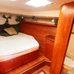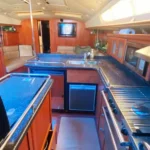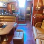 - Comfortable interior is roomy, with a full-beam master suite, open salon with large windows and a well-equipped galley, making it ideal for extended cruising or living aboard.
