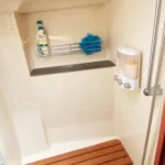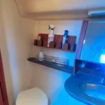 - Medicine cabinets and under-sink storage in both heads for toiletries and cleaning supplies.