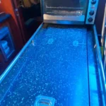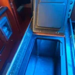 - Overhead cabinets and under-seat storage in the salon.