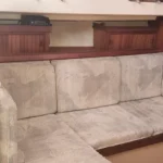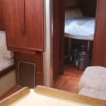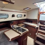 Below, the boat looks far bigger than 35 feet. The folding salon table opens the cabin so it feels like a 40-footer when you’re not dining, then converts for meals or charts in seconds. Ventilation is excellent, headroom is generous for the size, and the layout is efficient and practical: a comfortable V-berth forward and a roomy aft quarter berth that truly sleeps like a queen, a proper galley, and a head with real elbow room. Storage is honest-to-goodness cruise-worthy.