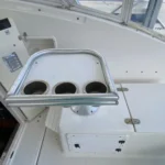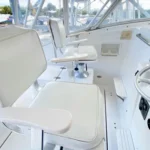 With the center elevated helm this Pursuit has abundant fishing features including: a fighting chair, livewell, outriggers (in storage), electric reel receptacles, Garmin touchscreen chart plotter, radar, and a depth sounder with a powerful 1 kW dual-frequency transducer that will ensure you are equipped to find and land the big ones. There is also an extra captains chair, in storage, that can replace the custom cup holder.